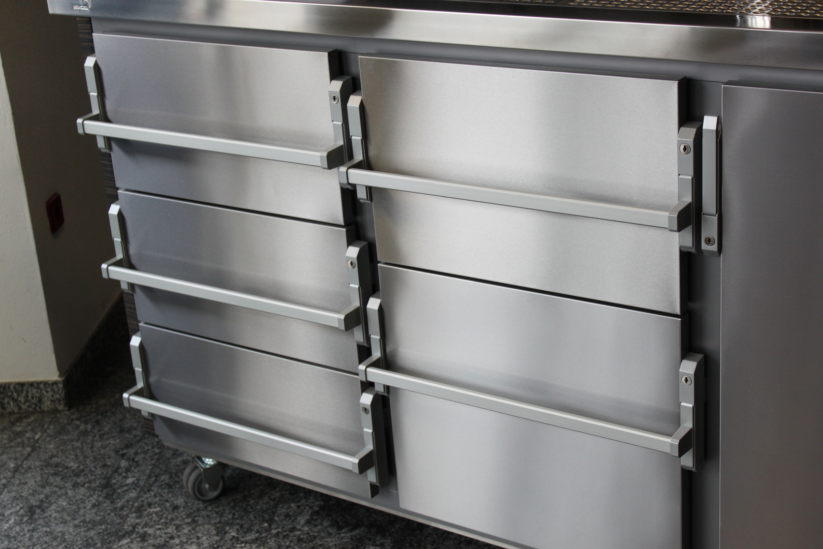 Auf den folgenden Bildern sehen Sie die Griffvarianten verschiedener Theken-Serien aus dem Hause K&M Holland.